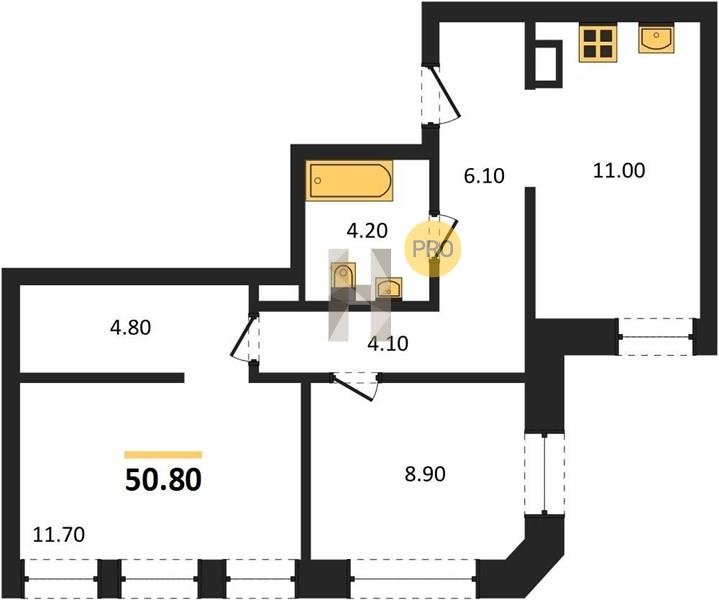 Площадь от 50.8 м2