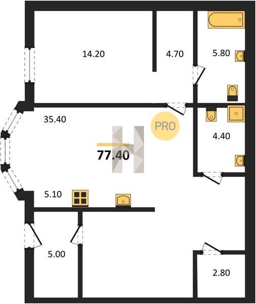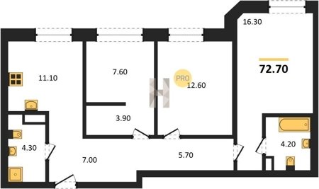Площадь от 72.7 м2