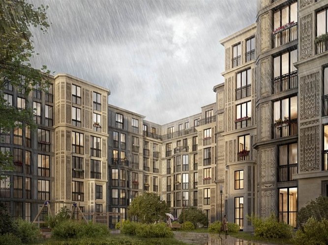 Облик комплекса создан мастерской Liphart Architects и унаследовал благородство петербургской традиции зодчества. Акцент на деталях, продуманный декор, панорамные окна с утонченными балконными решетками и мансардный этаж с террасами делают его неповторимым.